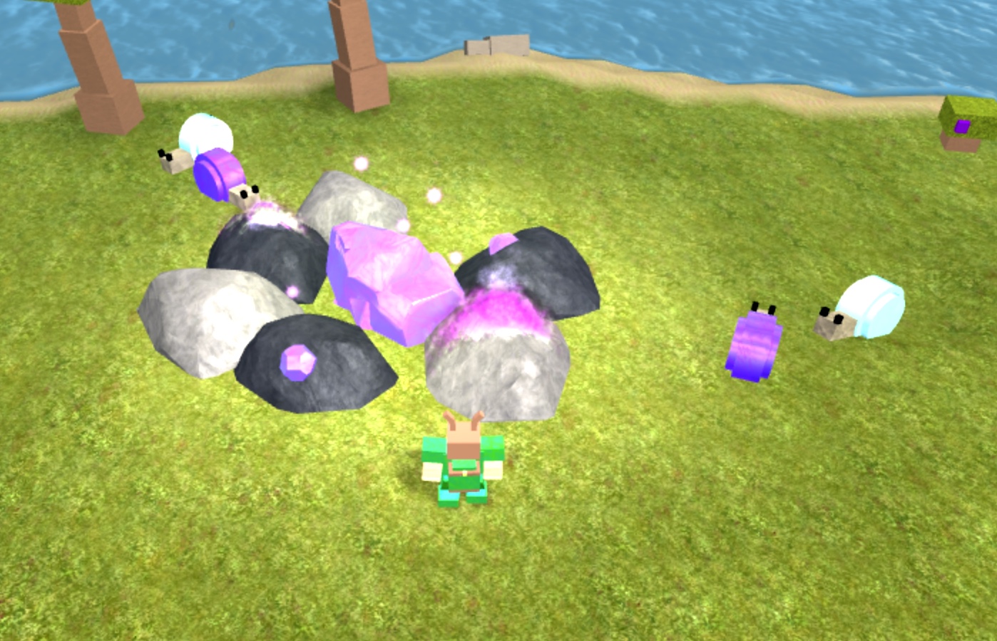 A player atop an ice island. The island used to have the totem of the moon but now it only has crystal lodes petrified trees petrified bushes and the lonely god which will drop two raw meats three bloodfruits and some essence as well as spawning a meteorite. The game includes a crafting and level progression system that allows for a basic advantage over other tribes. The crystal island is the most recent floating island added to booga booga as of the magnetite update.